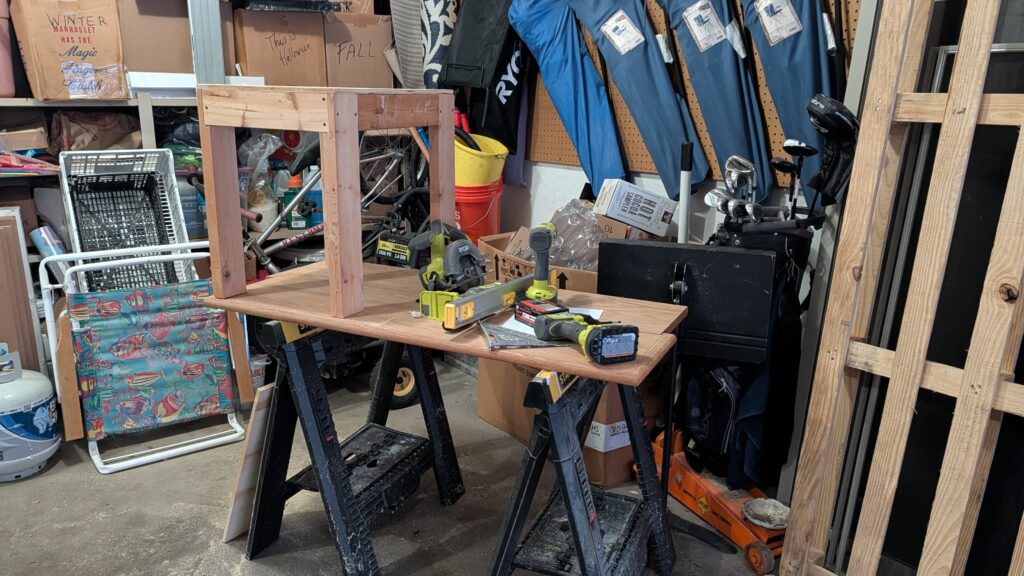 Keith built my coworker (no, I don’t have a job) a table to set her mini fridge on so it can reach the outlet. He is a good guy.
