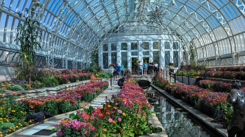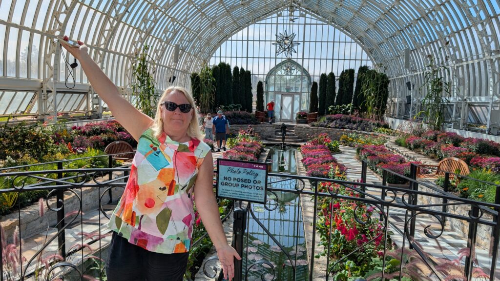 We went into the conservatory. I should go there in the winter – it was super hot and humid in the fern room. That might be awesome in January. In the fancy room it said no posed or group photos. I just went ahead and posed. The fancy room at sharp and scary plants as well as beautiful ones.