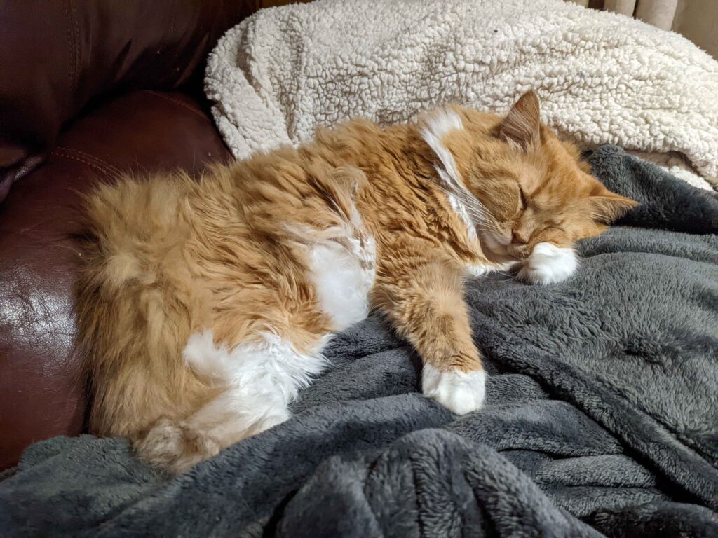The POTD is Sophie imitating me today. I can sleep on my left side now. And I did. I got my medicine drop at 8am before Keith left for rehearsal, then slept until 11am. He brought lunch. I went back to sleep until 5pm. I felt so much better after all that rest. I can get and keep my eye pretty open most of the time. I can only see blur, which I guess can last for a long time, but I am getting comfortable with the weird combination of sight one side that the other side makes very wonky. When I close my right eye and look out the blurry eye, I can tell where the windows are and stuff like that, but when I have both eyes open I feel blind on that side. My brain must just winnow out all the non information or something. It is very nice to just close the non-working eye and look with my right eye, but I am not supposed to do that. Darn.