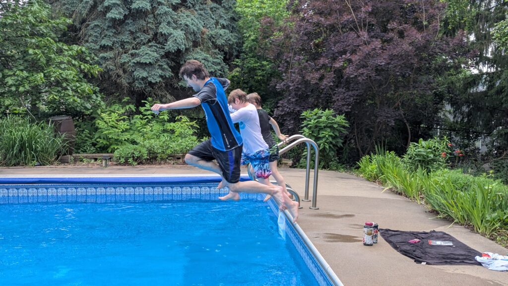 We took advantage of resort amenities today. My friend, Christina, and all three of her boys came over for swimming. It was delightfully cool for those of us not swimming and apparently the pool/hot tub combo was great for those who were.