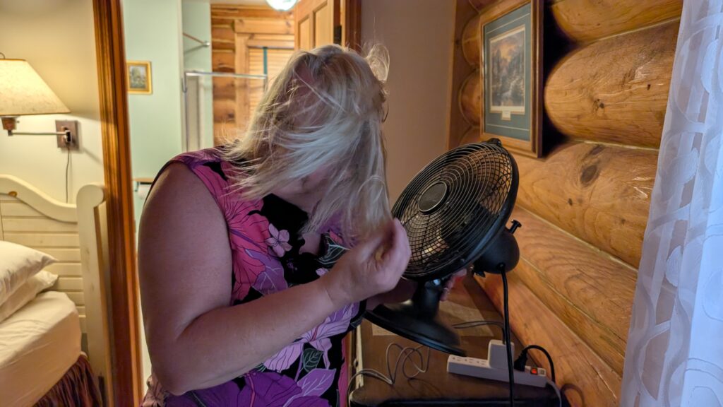 Our room had no hair dryer, so I used the fan. We had a great breakfast, visited the pretty chickens, and headed out to the House on the Rock.