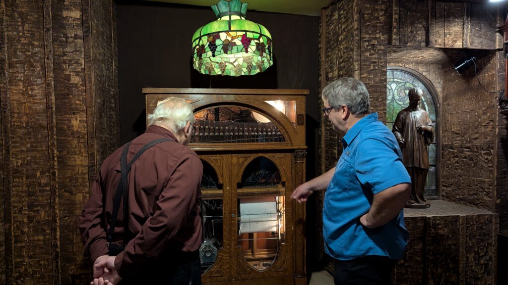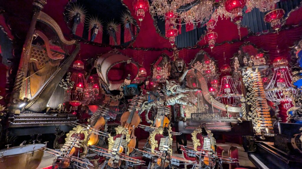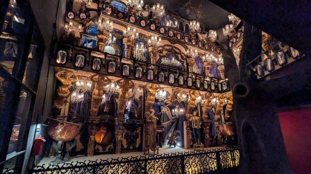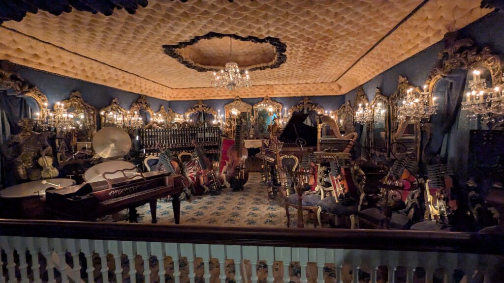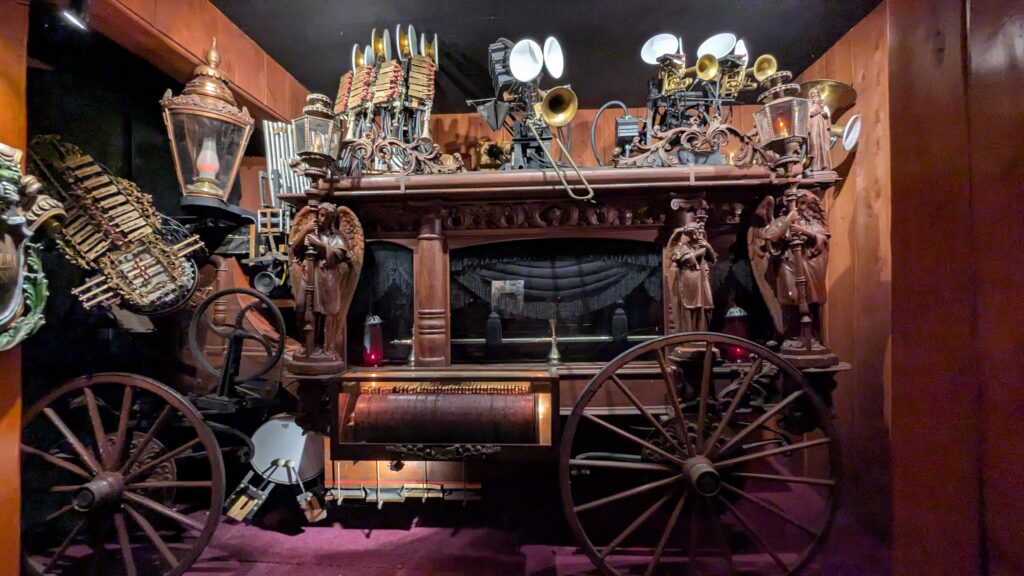 He collected things he liked. Collection got bigger, house got bigger. He never had a job – just earned money through ticket sales and continued to expand. Julie wondered how much his collection was worth now. I think most of it would be worthless, because unless you have room for a room sized music box, who is going to buy it? (who has room for a room sized music box?!) On the other hand, it is priceless because this stuff just doesn’t exist anymore. I am very glad it exists in this crazy collection.