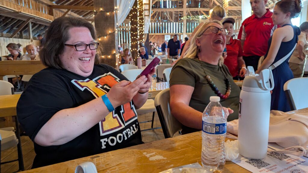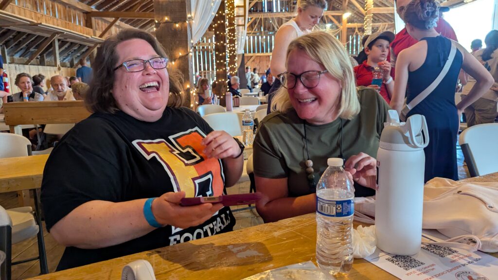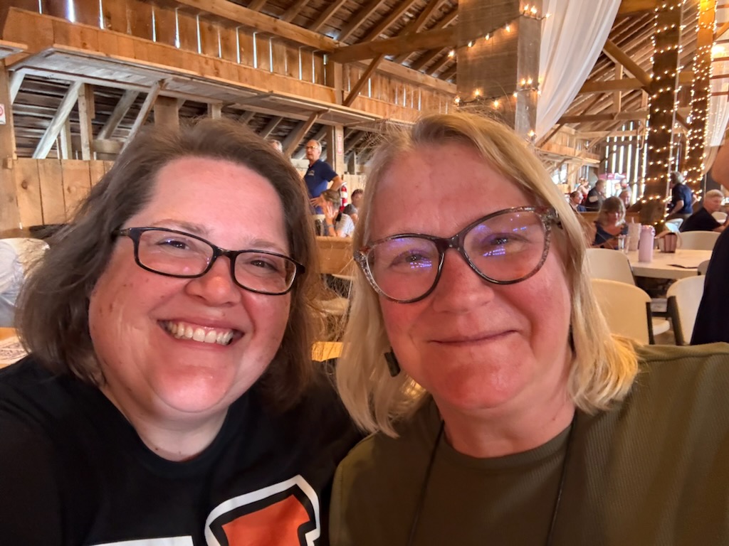 Jenny and I thought we needed a picture of us to help remember our very good day of listening. Our first selfie try didn’t have the camera turned around.