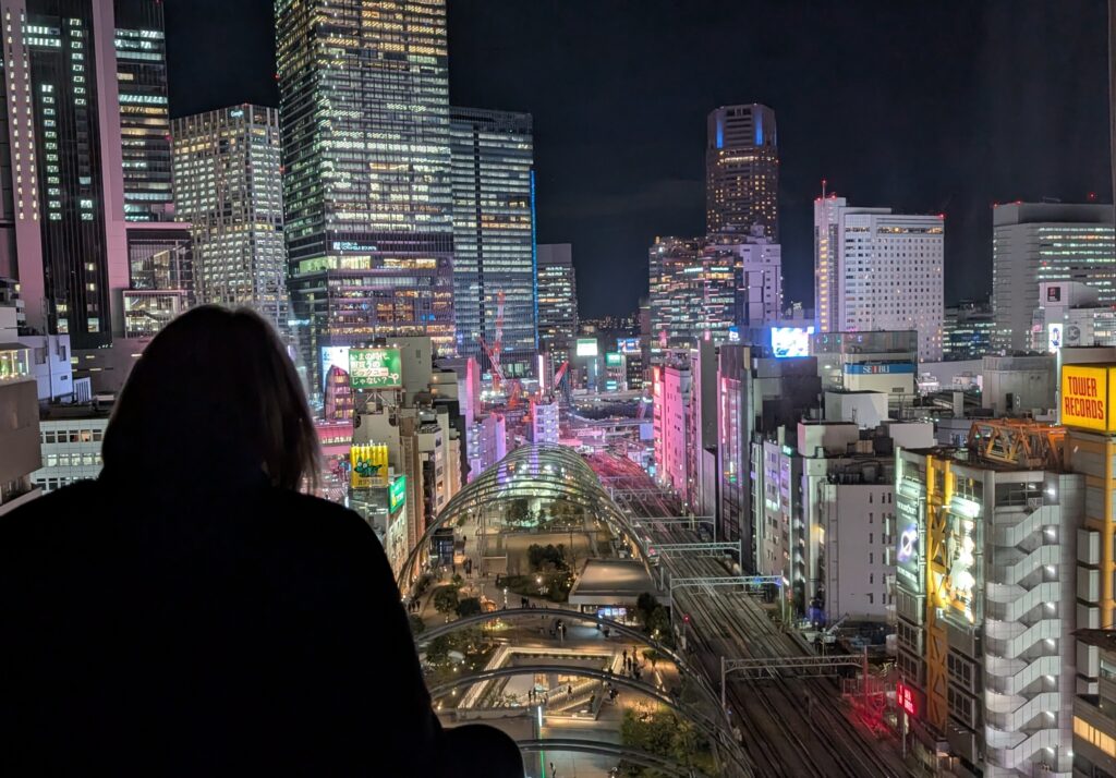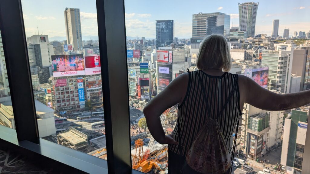 I thought we had been in big towns but now that we’re in Tokyo I know they were just little. We are staying just a block away from the famously busy pedestrian street crossing. We watched it from up high, then went down and got in the crowd.