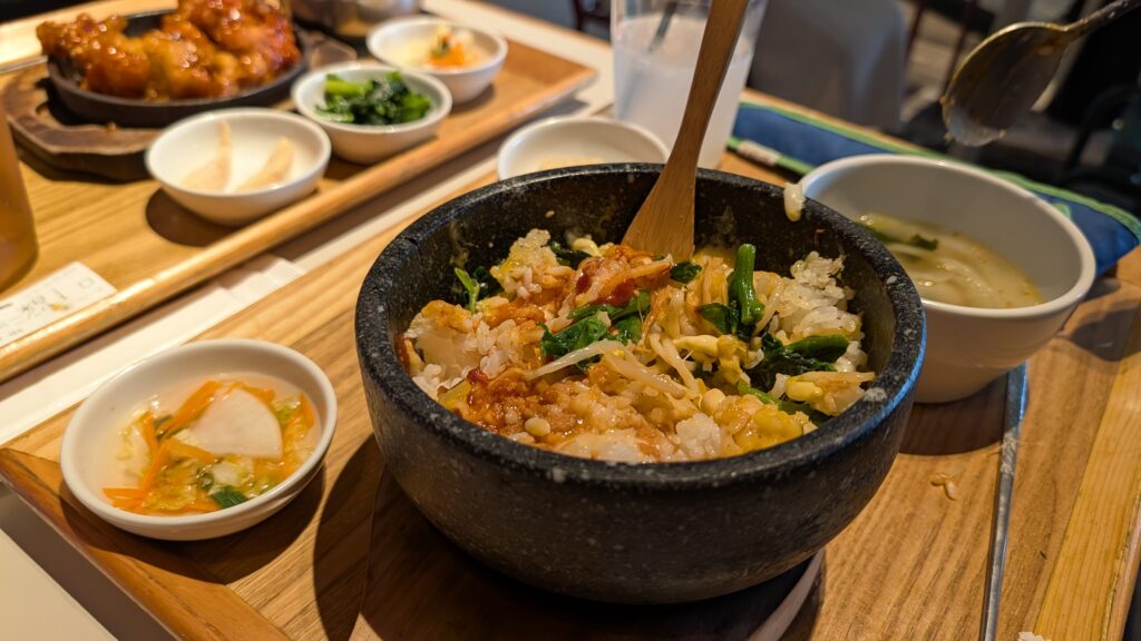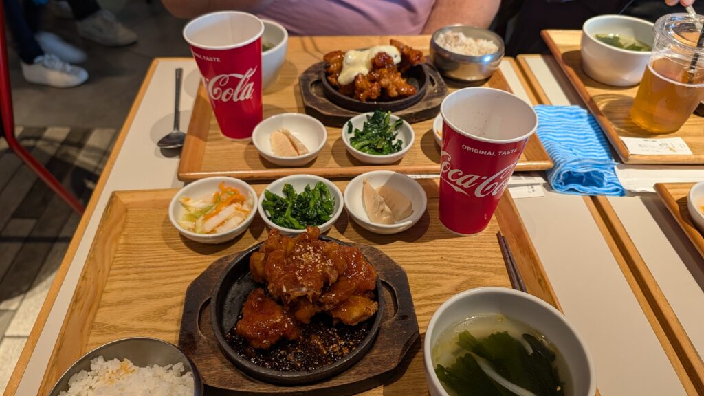 We ended up in the mall food court for our meal of the day. Keith, Mike and I had Korean fried (Yamnyom) chicken in a spicy sauce that was delicious. Kristine had bibimbap. It was also delicious.