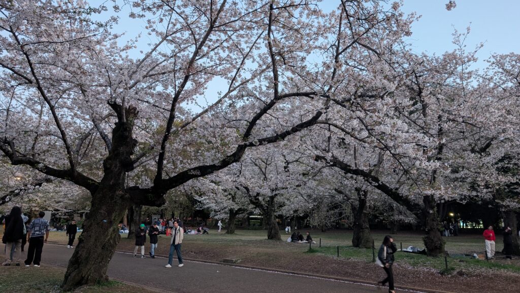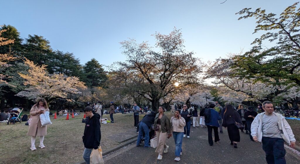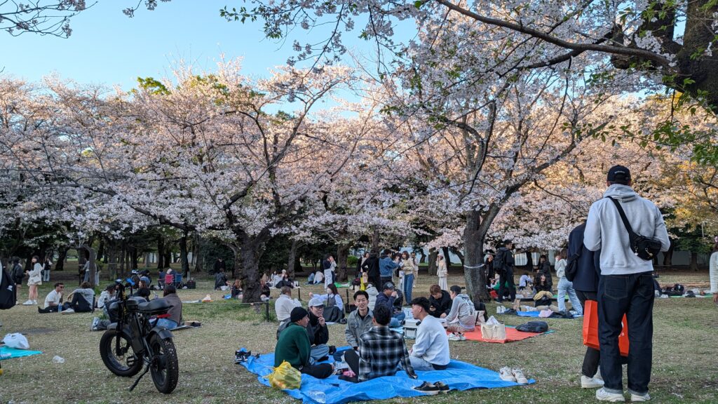 We walked to a nearby park and enjoyed watching the locals enjoy the cherry blossoms! People were all over picnicking as a few of the blossoms floated on the breezy air. Cherry blossoms don’t last very long, and people certainly come out to enjoy them.