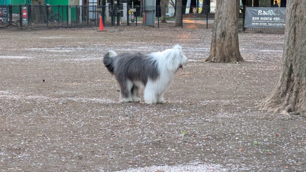 It was a big park and we walked all around. I particularly enjoyed the dog park part. We thought the fluffy brown dog looked like a beaver. Kristine thought he was silly.