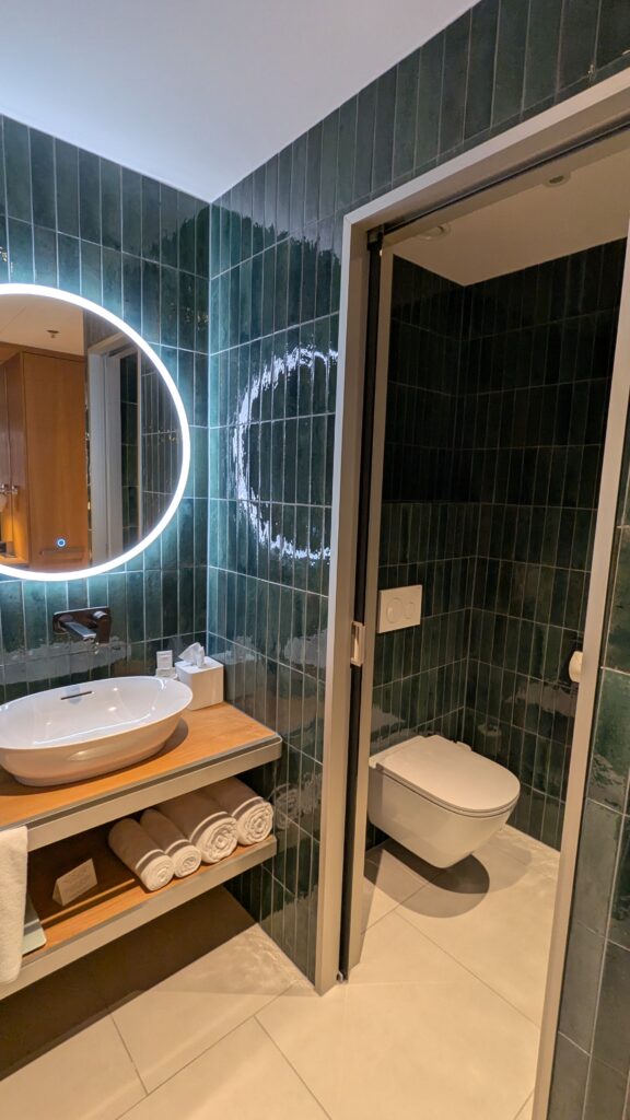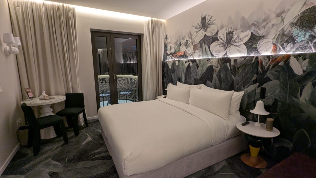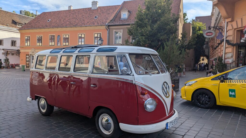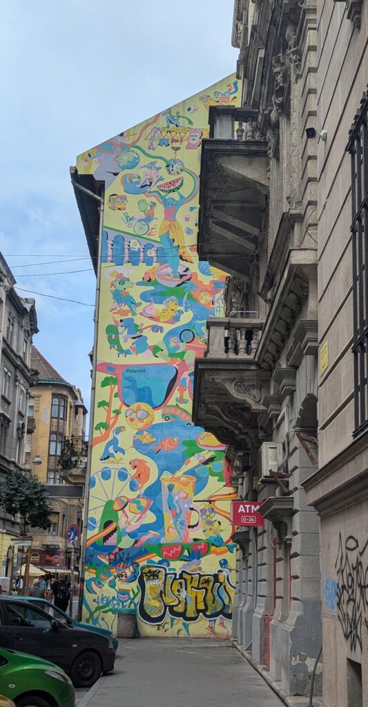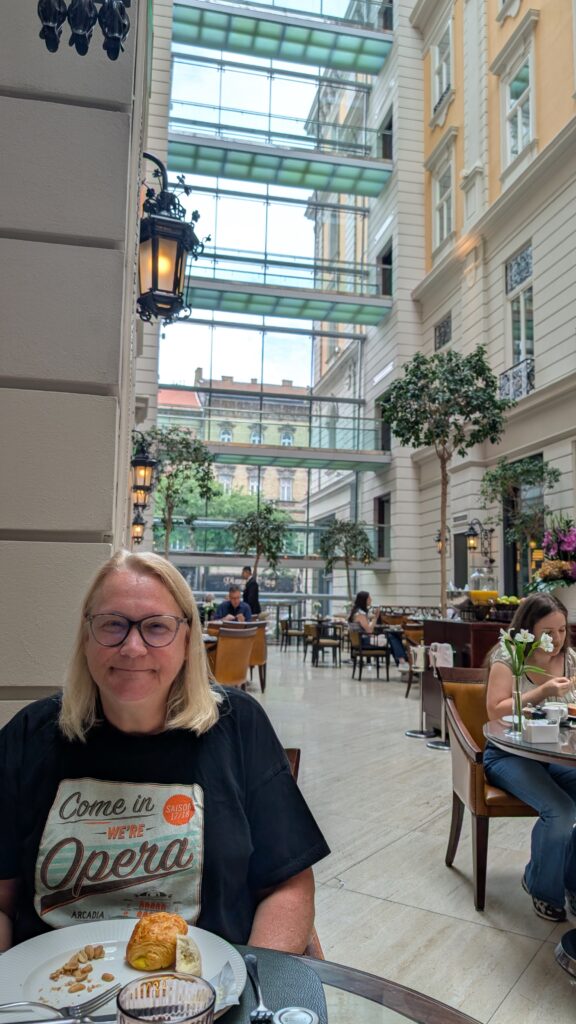 We changed hotels. Keith got us an Uber to go across town. He had options. We got a deal from TravelZoo for the Kimpton Budapest hotel. They gave us a delicious glass of sparkllng wine as we checked in. Our room is really nice and they seem to have thought of everything – we can even check flight status on the TV.