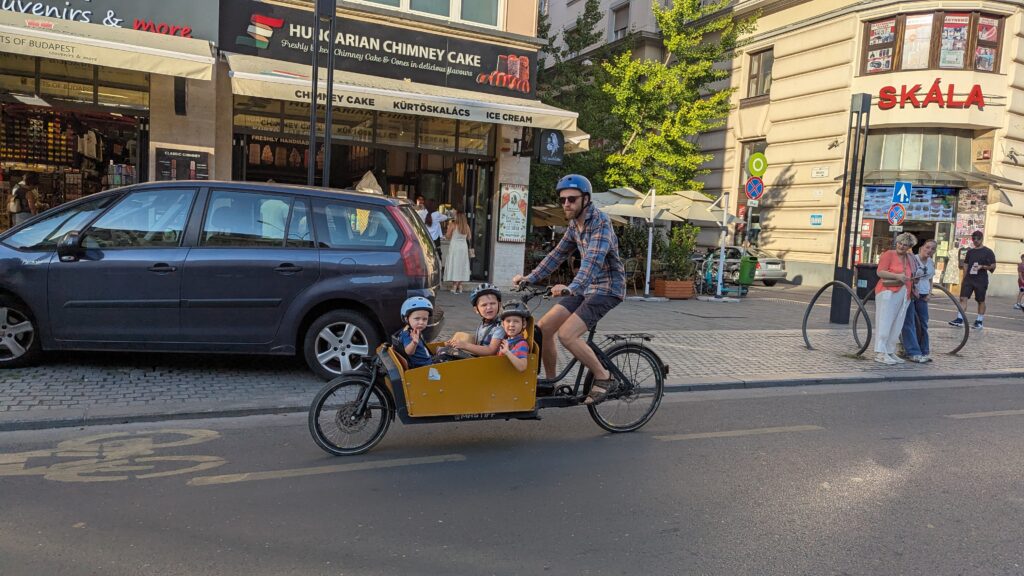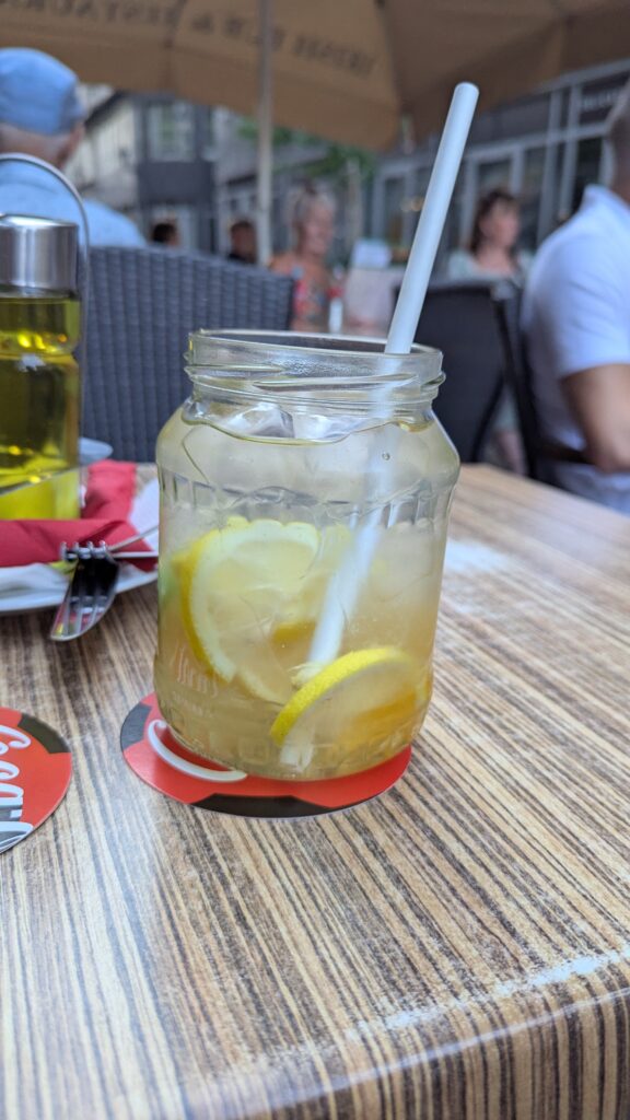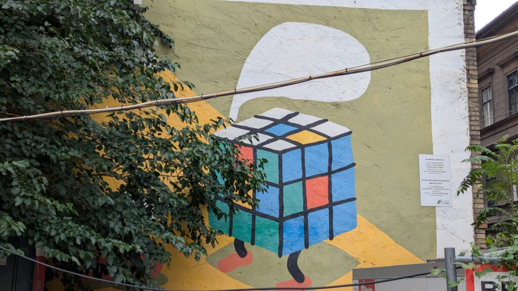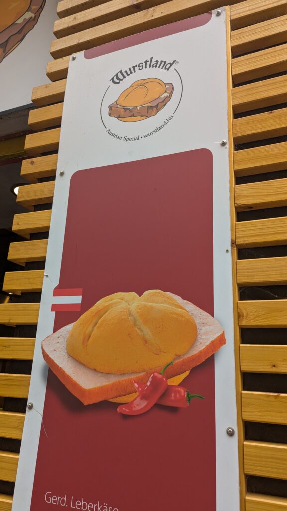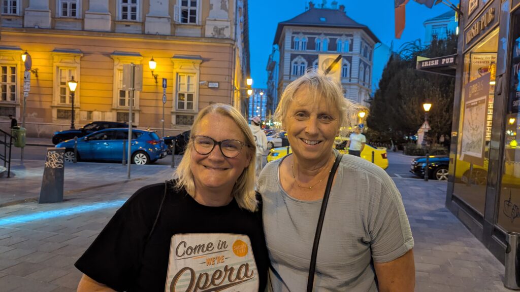 We had dinner with Randi from the backyard!! I know Randi originally from Woodbury Junior high, but really got to know and spend some time chatting with her in Jean’s backyard and book club. A month ago she said she would be in Budapest – seeing off her son as he starts a two year wander through Europe – and I said I thought I would be too. So we are both here and we met for dinner. There we were – just sitting outside the restaurant eating with someone from home, like it was the most normal thing. We both had a “spice bag” – breaded chicken with tiny veggies and fries and a remoulade dipping sauce.