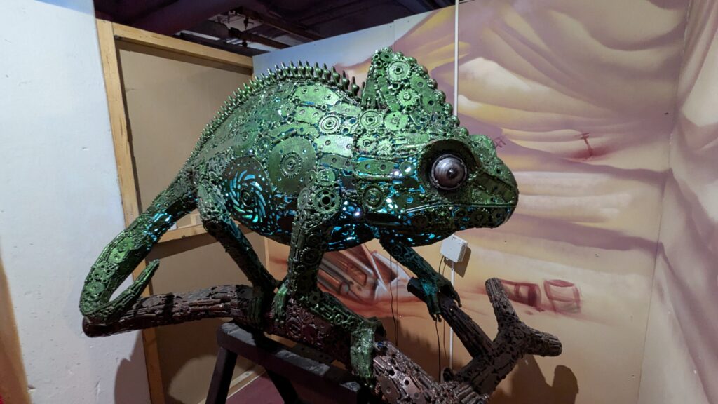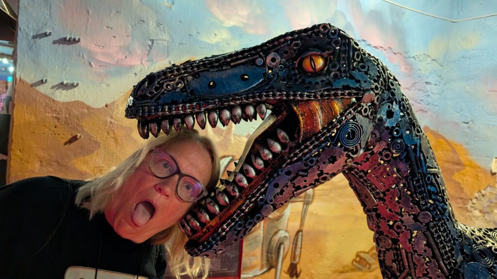 We gave our bags to the front desk and headed to the trash museum. The artists primarily upcycle old parts of cars into art. It was only a 15 minute walk from our hotel. The weather today was outstanding. It only got up to 73 in the afternoon. I wore sleeves AND took my summer cardigan because I imagined getting cold when we rode in the wind. I am delusional. It was glorious all day.