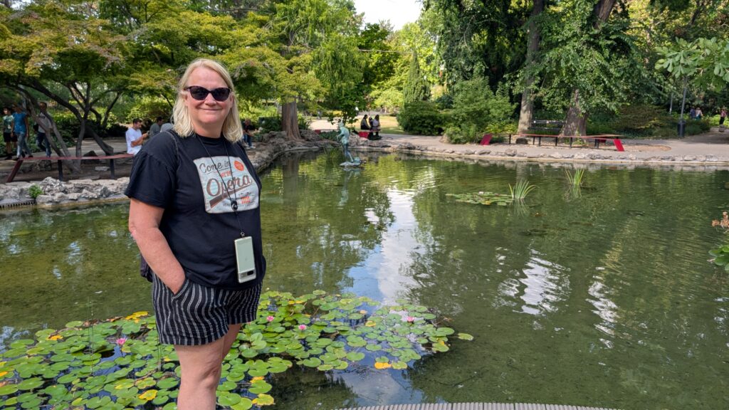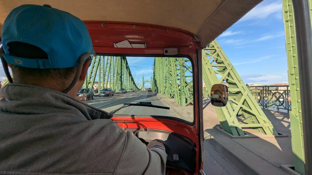 Since we had seen some of the classic tourist things already, Robert suggested we go out of downtown a bit and see some other things. We were all for it. We took the highway (in our tuk tuk! It was not as crazy as driving a golf cart around Bonaire, because Robert was a way more competent driver than the ladies and I were in Bonair, but close!!). The Margaret Bridge has an exit in the middle of it where you can go to Margaret Island. It’s a big island in the middle of the Danube that has a couple hotels and lots of recreation areas and a Japanese Garden that we visited.