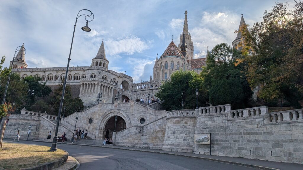 The Mattias church is up on castle hill but we didn’t see it last night. It is just stunning with its tile roof. The area behind it is called the Fisherman’s Bastion and it has 7 towers for the leaders of the 7 tribes. They look like an awesome sandcastle neighborhood.