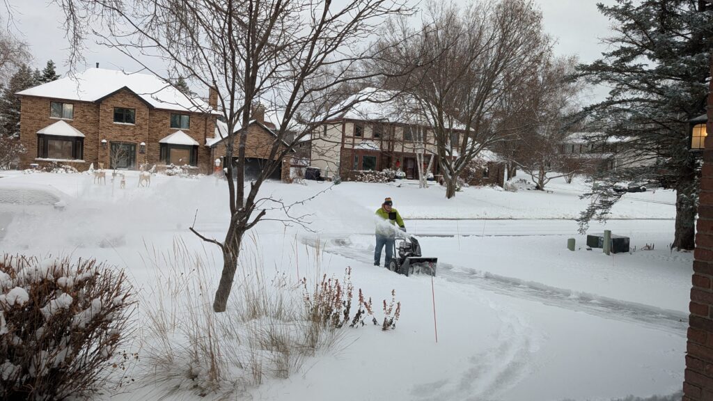 Our old driveway was only a couple feet from our neighbor’s driveway, so Keith had to move all the snow to our front yard. It was not exactly difficult, but it added an extra layer of thought to the process. He enjoyed just having to walk up and down the driveway today, as much as one enjoys being outside in 20-degree weather. We only got about 4 inches of snow, so it was not a big deal. They got at least twice as much in Milwaukee, so Donna and Michael were delighted to find that friends had cleaned up their snow when they arrived home.