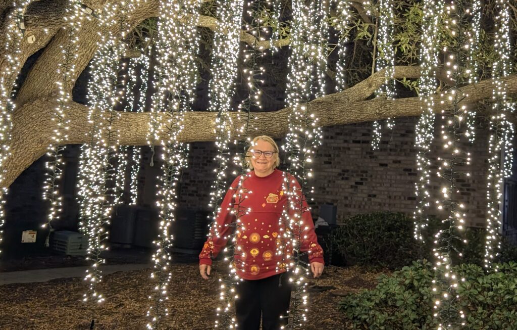 We didn’t do entirely nothing today. We took several walks in the lovely weather. I stayed up until 2am finishing my book because I was really enjoying it. No construction sounds woke us up and we slept really late. Keith went for pizza (buy one large, get one half off – so obviously we got several days’ worth of pizza). We found some sparkly lights during an evening walk to the indoor pool. Keith went to Walgreens for Kleenex because the stuff here is sandpapery. He got tomato soup to have with our grilled cheese and was a very happy guy.