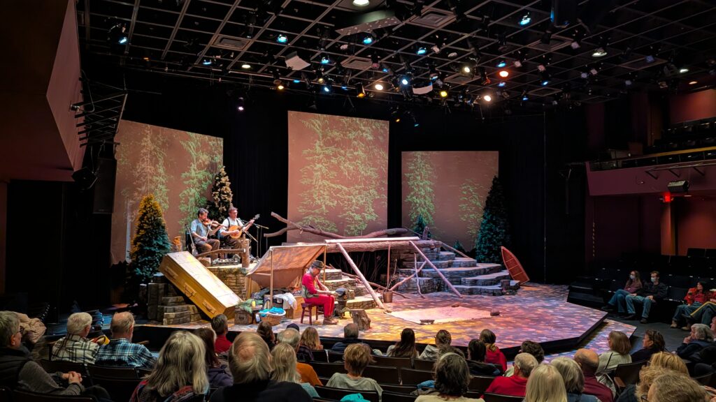 Tonight, we went to see Whoosh! at the History Theatre. It was…um…it…I don’t know. It was a one man show and that guy was great. The show was over two hours, and he had to remember all of it and he did a terrific job. Unfortunately, the show itself wasn’t very good. It had a lot of cool ideas that they didn’t quite fit together very well. They tried an idea of an incomplete narrator to start, then adding more and more to the stories with “aha” moments. It ended up with a lot of repetition and confusion. Stories don’t have to be chronological, but this web of telling and retelling and going around and around was kind of a mess. It also had some musical accompaniment that was a train wreck. The playing of instruments was terrific. The singing was awful and the songs were atrocious. There were some cool set pieces and some good information about MN history, but I can’t really recommend the show. Sorry, Whoosh!