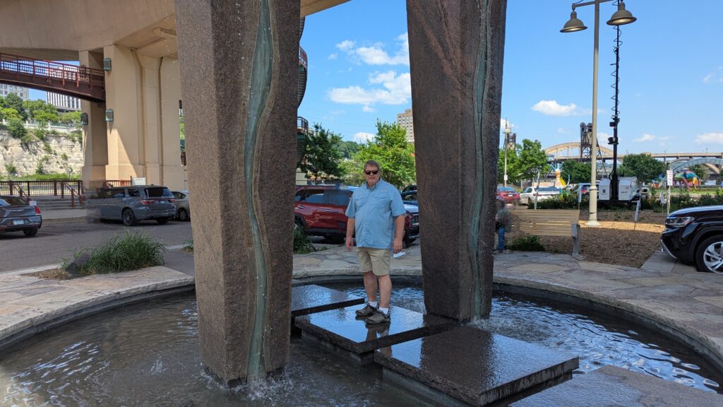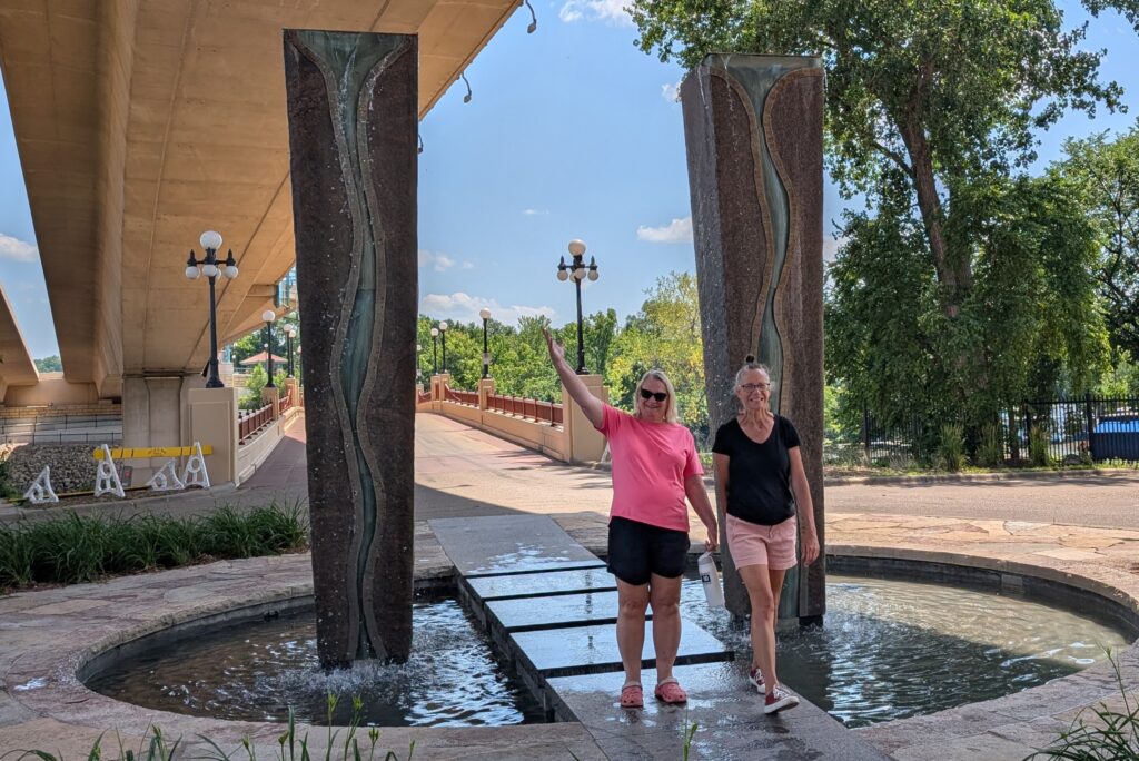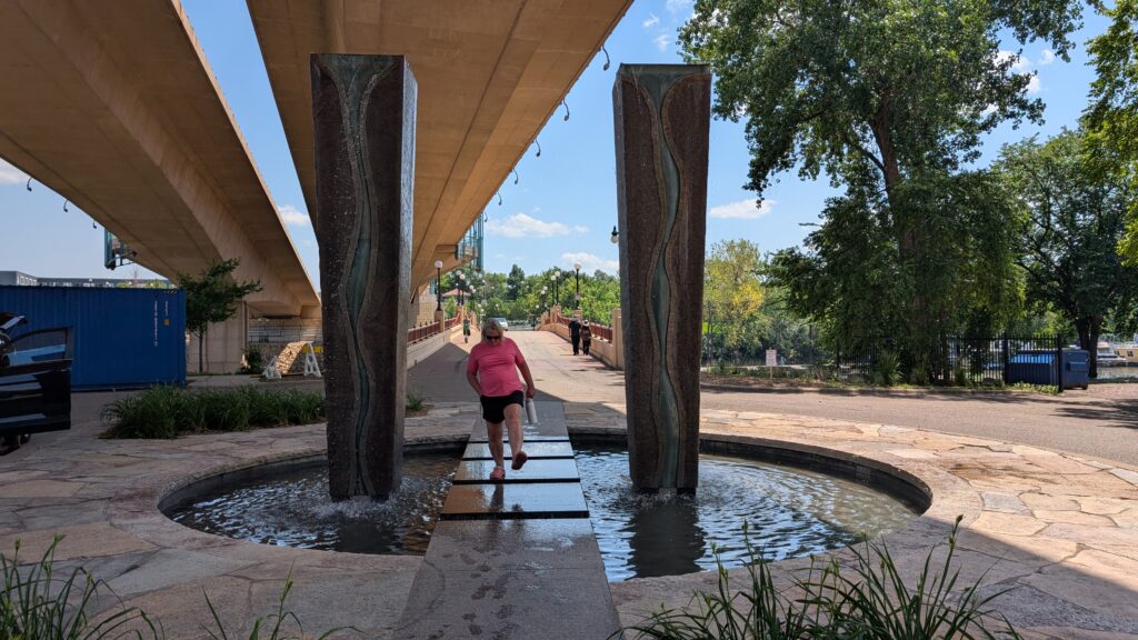 I walked back and forth in a water feature and it was great. I told Donna to come with me. She did and the wind blew the water on her and she almost knocked me into the water dodging the water. More laughing.