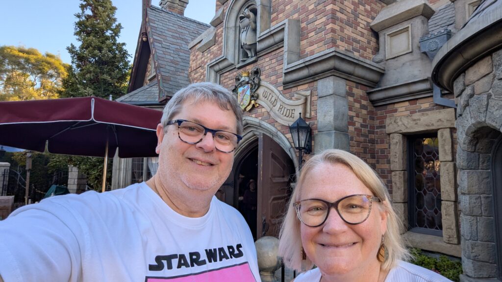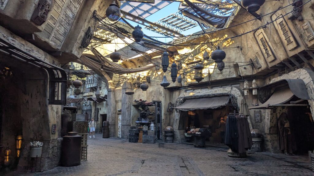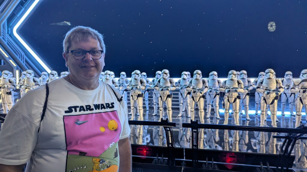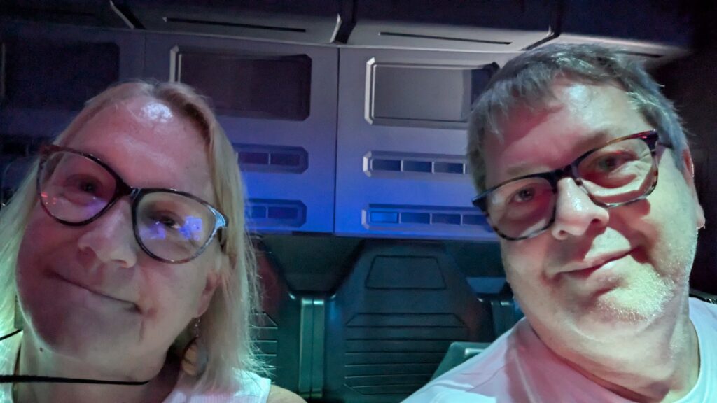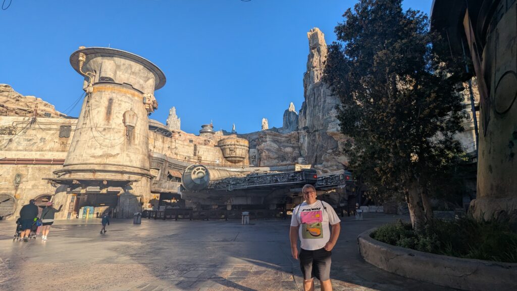 We had completely missed Star Wars land the first day and chose to ignore it yesterday, so today was the day. I figured there was so much else to do in Disneyland v Hollywood Studios in FL that beyond the few diehards of the day, Rise of the Resistance would not have much going on in the morning. Was I ever right. Most of Galaxy’s Edge was empty, but Rise was pretty ridiculous. We had a group with us during the preshow (that we walked right up to), then Keith and I were alone. We had our own transport for the ride. I got to yell along with the story line – Nooooo! Yesss! Pew Pew Pew! Kylo Ren I will defeat you! – you know, the standard stuff you have to keep in your head so as not to bother others. It was pretty great.
