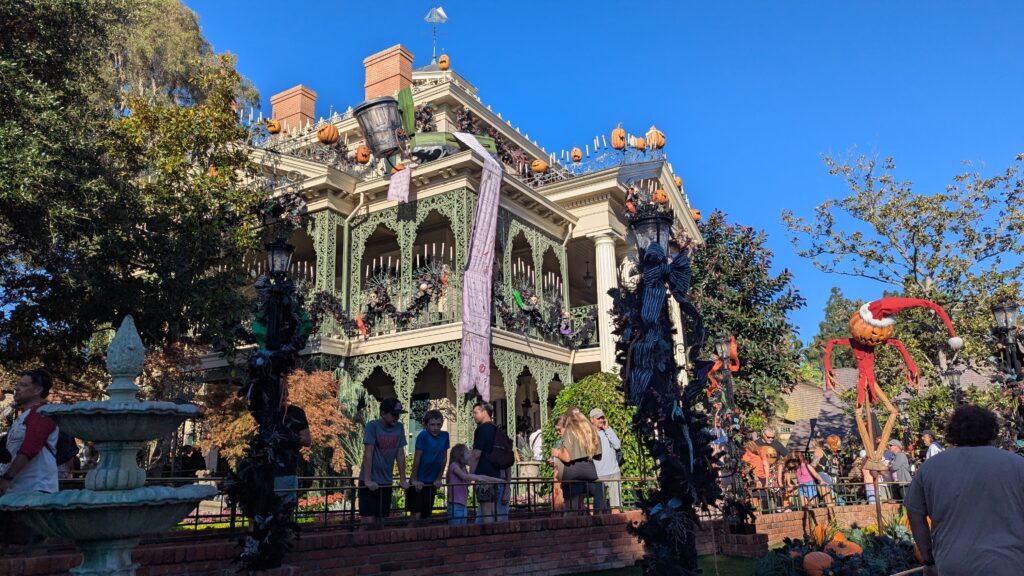 We walked by the Haunted Mansion on our way to our first LL at Indiana Jones and no one was in line, so we jumped in. I love the Nightmare Before Christmas overlay. The song gets a little crazy in your head. I will not sing it here, so you will not have to have it stuck in your heads.