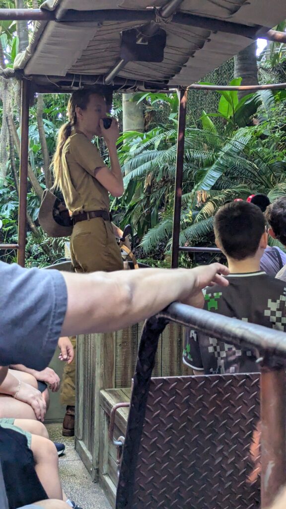 Jungle cruise remains walk-on-able. I don’t understand why. It is just the best. Today we had a Dollar Store Alexander as our skipper. He was absolutely terrific. He didn’t do any of the other day’s guy’s jokes – all new. I thought his delivery was just as Alexander would have done it. It has always been Benjamin’s dream job, but Alexander could do it well.