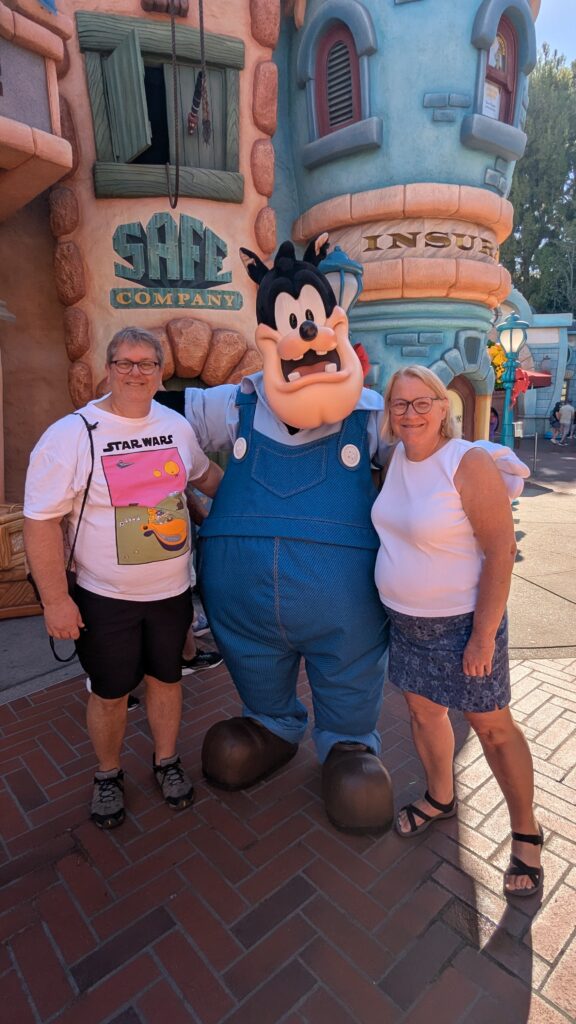 We went on Roger Rabbit – which is a dizzy-ing ride that ends up with you going through a hole in the wall. It’s hard to explain, but I like it. We walked out and had our picture taken. Look at that cute little skirt (little! Ha) I am wearing. I found that right out of sister Nancy’s drawer last week when I was visiting. Visiting and looting are more similar than you might think. But I digress…